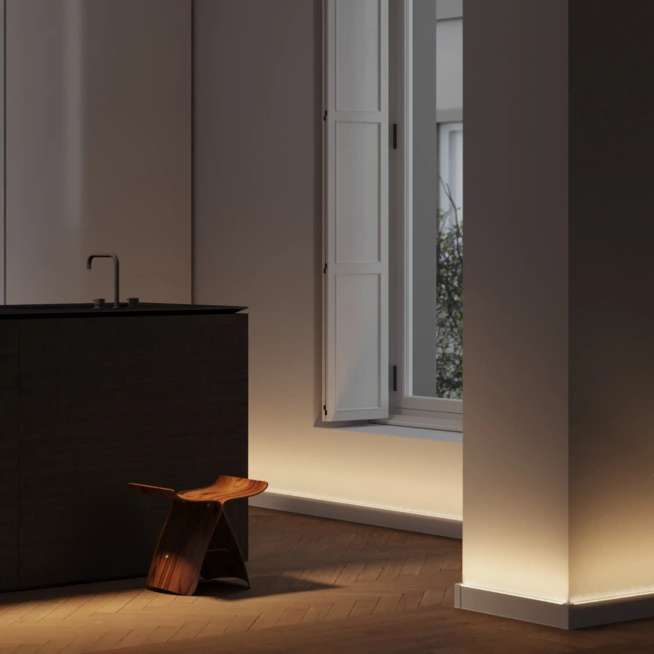 Mehr Licht, mehr Ordnung – mit der Lichtleiste am Boden wird deine Küche nicht nur funktionaler, sondern auch stylischer. Perfekt für die nächtliche Orientierung und als dezente Beleuchtung, die Eleganz und Struktur verleiht.