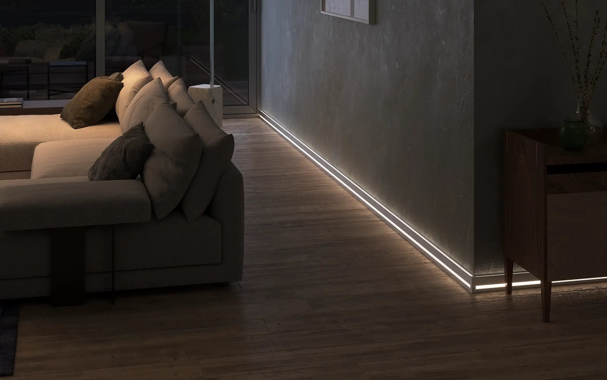 Wohlfühlmomente garantiert: Die Bodenlichtleiste im Wohnzimmer sorgt für warmes Ambiente, elegante Akzente und eine dezente Beleuchtung, die deinen Raum in ein gemütliches Zuhause verwandelt