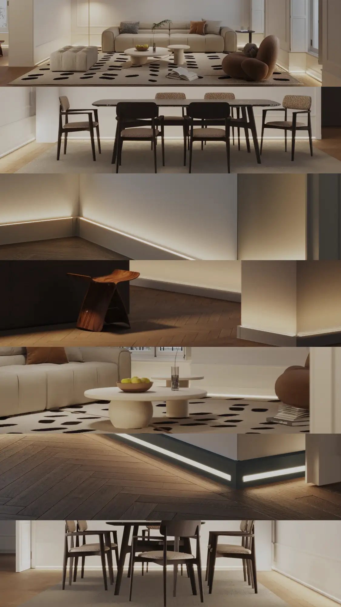 Setz dein Esszimmer in Szene! Die Lichtleiste am Boden schafft eine stimmungsvolle Atmosphäre für gesellige Abende und macht deinen Raum noch einladender – modern, praktisch und einfach schön.
